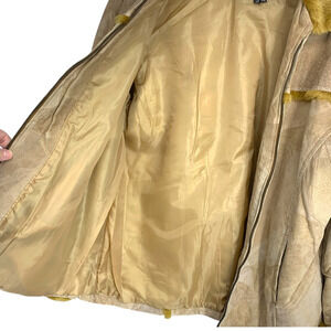 Vintage 1970's Leather Works Sz XXL Patched Suede Jacket Faux Fur Trim Pockets
