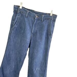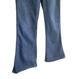 Vintage 1970s Levi’s Orange Tab Flare Bell Jeans Button Pockets Blue Denim