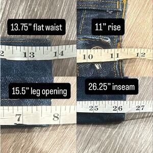 Size: Tagged W28 L36, but measure more like a size 24 with a 26" inseam. May fit a kid as well.