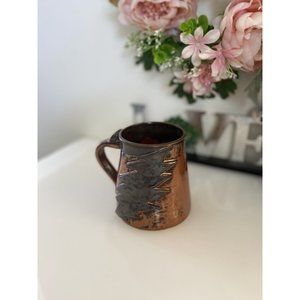 Vintage 1970s Lighting Bolt Brown Ceramic Cup Hand Made Painted Rustic Unique