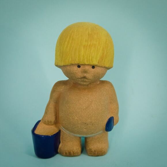 Vintage 1970s Lisa Larson West Vast Gustavsberg Stoneware Clay Ceramic Hand Painted Glazed Swedish Boy Beach Bucket Children of The World Figurine Decor Decoration