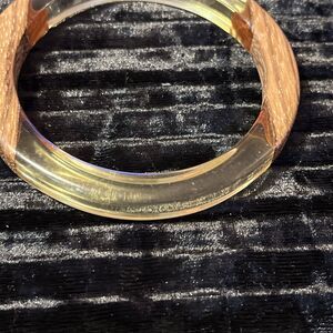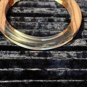 Vintage 1970s MCM Clear Lucite And Wood Bangle Bracelet Retro Jewelry