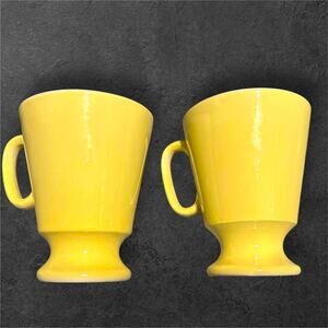 Add a touch of vintage charm to your kitchen with this set of two Shenango China pedestal coffee mugs! These bright yellow mugs feature a classic MCM design from the 1970s. Perfect for coffee, tea, or any hot beverage. They are in great condition and measure approximately 4 inches in height and 3.75 inches in Made in the USA