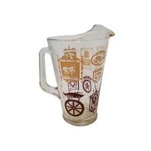Add a touch of retro charm to your collection with this vintage 1970's pitcher. Crafted in thick, heavy glass, it features a stunning gold and brown design, perfect for serving and display