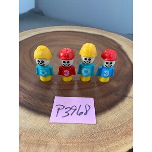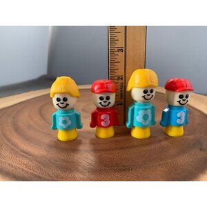 Vintage 1970s Matchbox Little People Figures Set of 4 with Number & Flower Desig