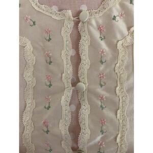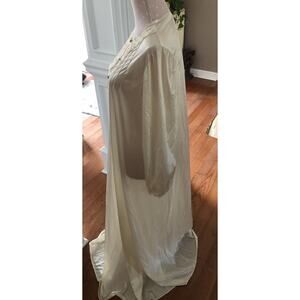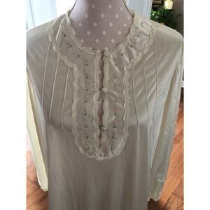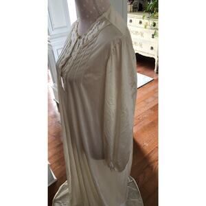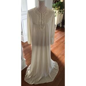 Vintage 1970's Maxi Ivory Silky Nylon Nightgown Long Sleeve Lace Vanity Fair M