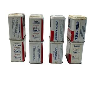 Vintage 1970s McCormick Spice Tins 8 Oregano Turmeric Cloves Allspice Thyme Sage