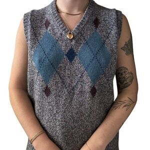 Vintage 1970s Mcgregor Wool Blend Dark Academia Equestrian Argyle Sweater Vest