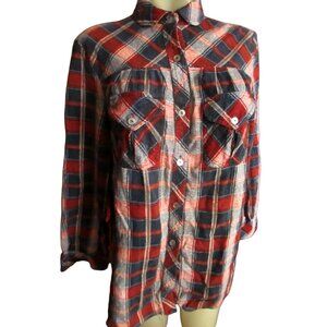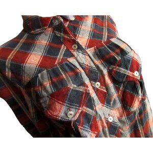 Vintage 1970s Medium Flannel Top Shirt Plaid Womens 11 Boho Winter Button Down