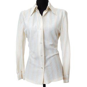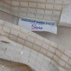 Disco cowgirl? Sure, why not! This awesome remnant of the '70s is ivory/cream with an allover metallic foil gold and silver thread pattern.
