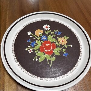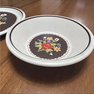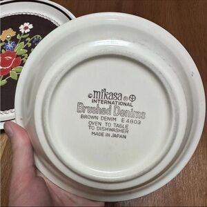 Mikasa Int’l 1970s Brown Denim Floral 11” Plate & Bowl Set