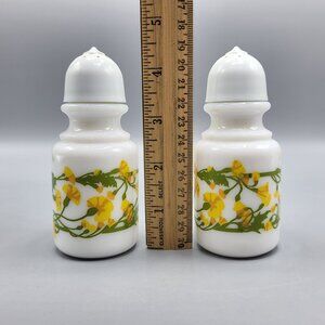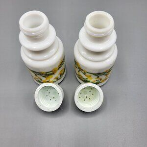 Vintage 1970s Milk Glass Salt & Pepper Shakers Wildflowers Yellow Floral Design