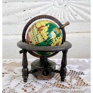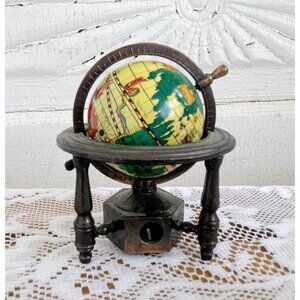Here for your consideration is a cute little vintage miniature world Globe Pencil sharpener. It is metal and the globe does turn. The stand measures about 2" tall with the globe bmaking it a little taller than that. It is in good vintage condition.