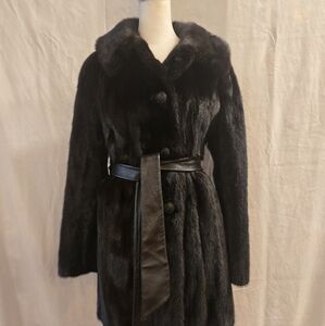 Vintage 1970s Mink Fur Belted Leather Coat Womens Small Medium