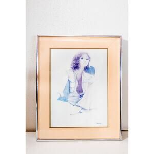 Vintage 1970s Mod Art Print Christine Rosamond Signed Framed Pastel Lithograph.