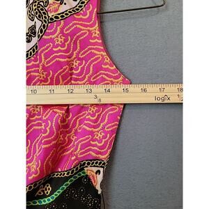 Style Notes: Iconic 1970s rainbow paisley print. Sleeveless design makes it perfect for layering or wearing solo for a bold, retro look.