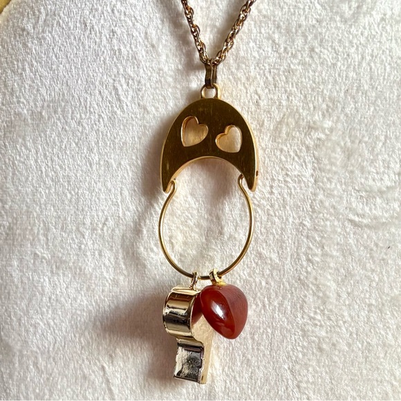 Vintage 1970s Monet Charm Necklace + 3 Charms one if them, the whistle, was a very popular charm in the 70s.