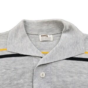 Vintage 1970s Montgomery Ward Polyester Stripe Polo – Men's XS • Grey Yellow
