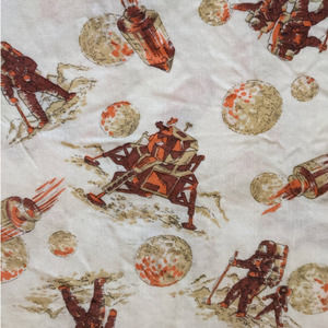 A very cool vintage novelty print fabric from the 1970's featuring astronauts on the moon from the 1969 moon landing. This fabric is a lightweight cotton flannel. It is a super cool and one of a kind print!