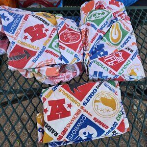 Vintage 1970s NFL Twin Flat & Fitted Sheet Pillow Case Fabric Sears Robuck USA