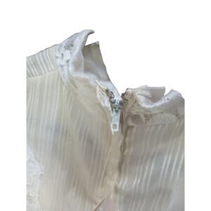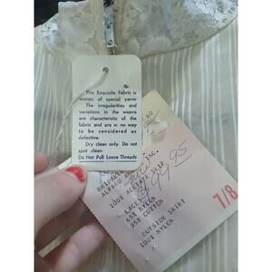 The dress is perfect for those who love vintage clothing and want to add a touch of sophistication to their wardrobe. The size is small, fitting as a size 4. The dress was made in the United States and has an Edwardian look, making it perfect for vintage-inspired fashion. This dress is perfect for those looking for a unique and beautiful vintage wedding dress.