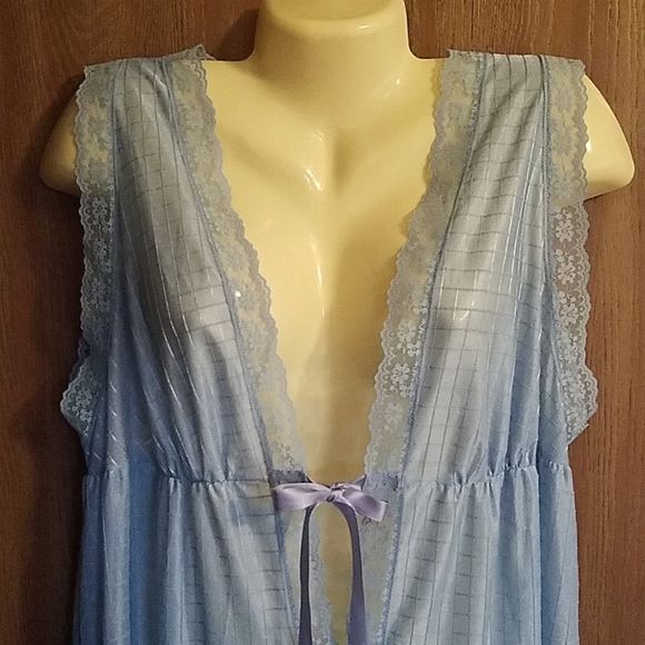 Beautiful blue vintage nightgown with a windowpane pattern to the fabric.