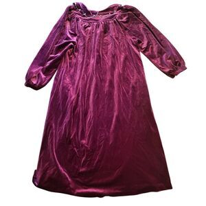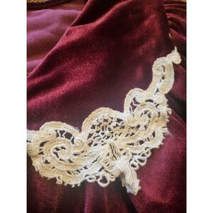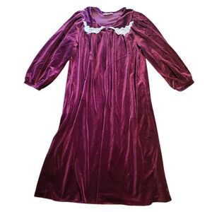 Vintage 1970s Nightgown Women's XL Burgundy Velvet Lace Collar Cottage Modest