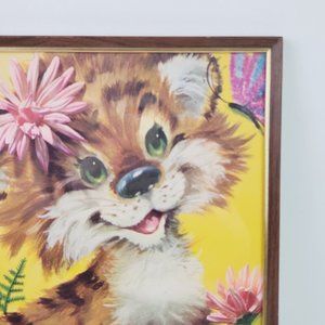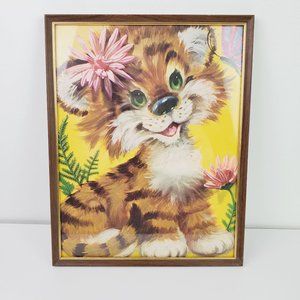 Vintage 1970's Nursery Art Lot Framed Big Animal Elephant & Tiger Kitty