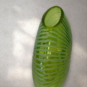 Vintage 1970's Oblong Green Glass Vase Etched Design