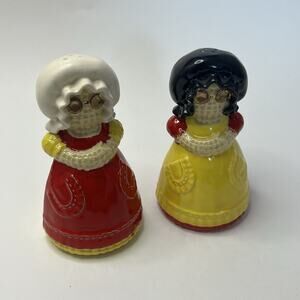 Vintage 1970s P Holt Ceramic Burlap Rag Doll Salt and Pepper Shakers MCM Unique