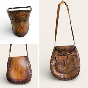 Vintage 1970’s Patchwork Leather Geometric Top Handle Shoudler Bag Purse