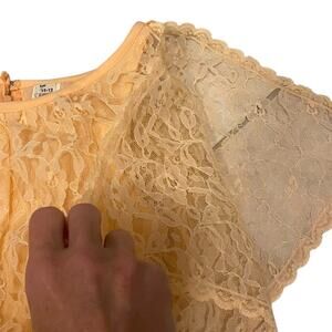 :Vintage 1970s Peach Lace Overlay Maxi Dress Prairie Gown / Women’s Small -