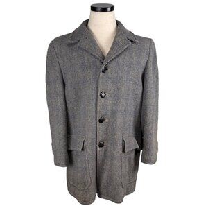 Vintage 1970s Penneys Mens Wool Blend Herringbone Coat Size 40