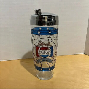 Vintage 1970's Pepsi Cola Tiffany Style Stained Glass Cocktail Shaker Barware