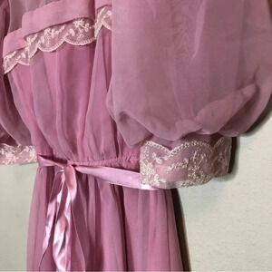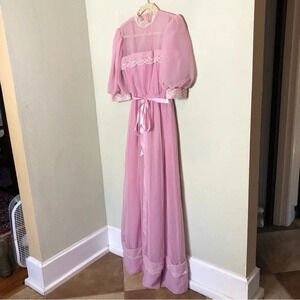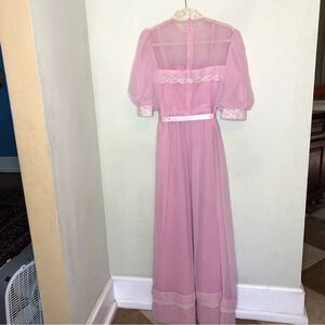 Vintage 1970s Pink Chiffon and Lace Gown Excellent Condition Small/Medium