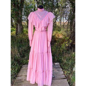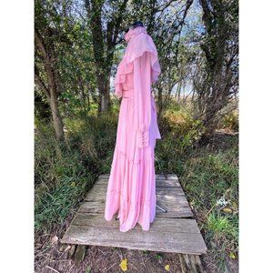 Vintage 1970s Pink JCPenny Peasant Maxi Dress Size 7/8
