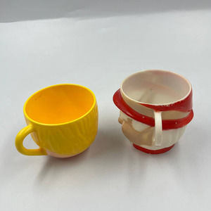 Vintage set of 2 1970's plastic coffee cups, Keebler elf and Campbell's blonde child "Dolly Dingle". Both cups have some wear as pictured, chipping paint.