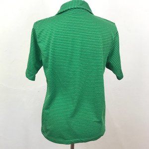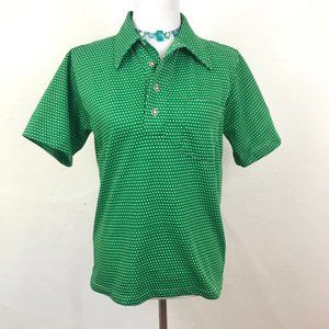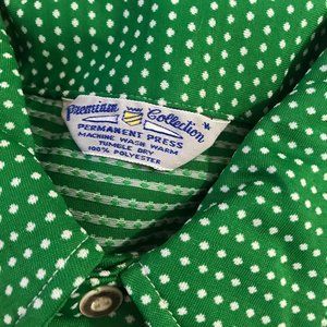 Very good condition. Freshly laundered. Green with white polka dots. Golf shirt style with two front breast pockets.