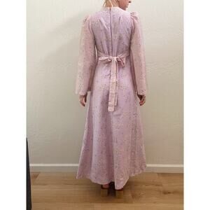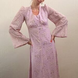Vintage 1970's Purple Floral Print Flare Sleeve Maxi Dress