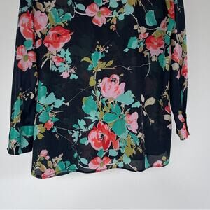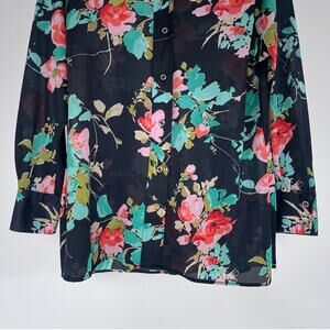 Cute dark floral retro button up. Slightly sheer slinkly poly fabric.