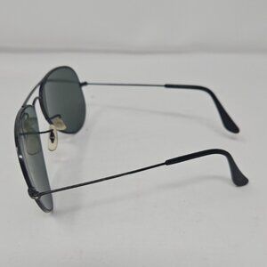 Up for offer here is a pair of vintage 1970s Ray Ban Bausch & Lomb Aviator Flight Pilot Outdoorsman Sunglasses with original case. Frame is black metal with dark green/grey/black glass lenses and nose pads. Excellent vintage pre-owned condition. The temple length is 120mm.