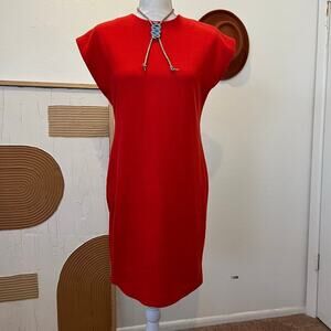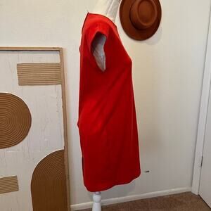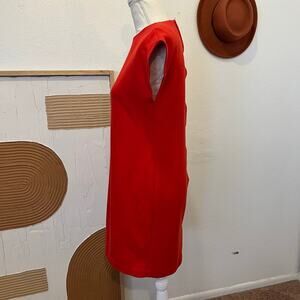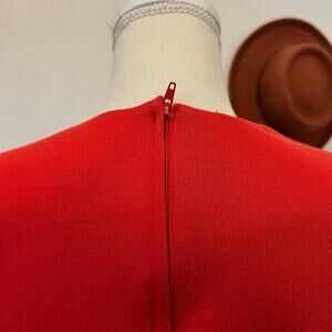 Vintage 1970s Red Knitted Mod Cap Sleeveless Zipper Back Mini Dress - Medium