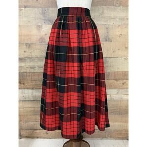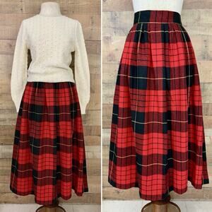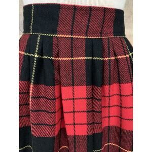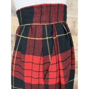 Vintage 1970’s Claude label, red plaid wool blend, unlined, front pockets, high waisted with back zipper.