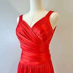 Vintage 1970s Red Wrap Dress Goddess Formal Event Guest 70s Cocktail Size Medium