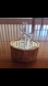 Vintage hand blown glass unicorn with cut glass circus ball on a 3 1/2 in brass edged mirrored rotating pedestal with wind up music box in side.