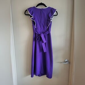 Vintage 1970s Ruffle Sleeve Midi Dress – Purple with White Trim ✨