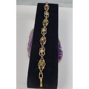 RENAISSANCE REVIVAL GOLDTONE JEWELED FILIGREE BRACELET, VINTAGE COSTUME JEWELRY