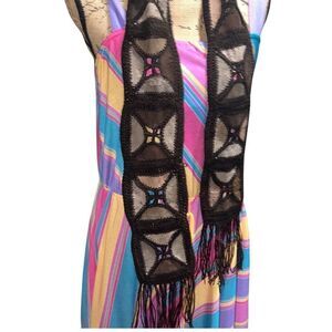Vintage 1970s Sash Belt Leather Macrame Crochet Scarf