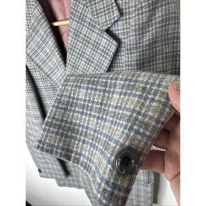 Vintage 1970s Sears Men’s Store Wool Sport Coat Blue Gray Check Plaid Men 36
