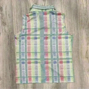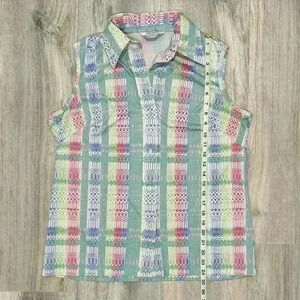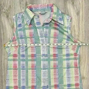Vintage 1970s Sears Perma Prest Sleeveless Print Button Collared Shirt Size L